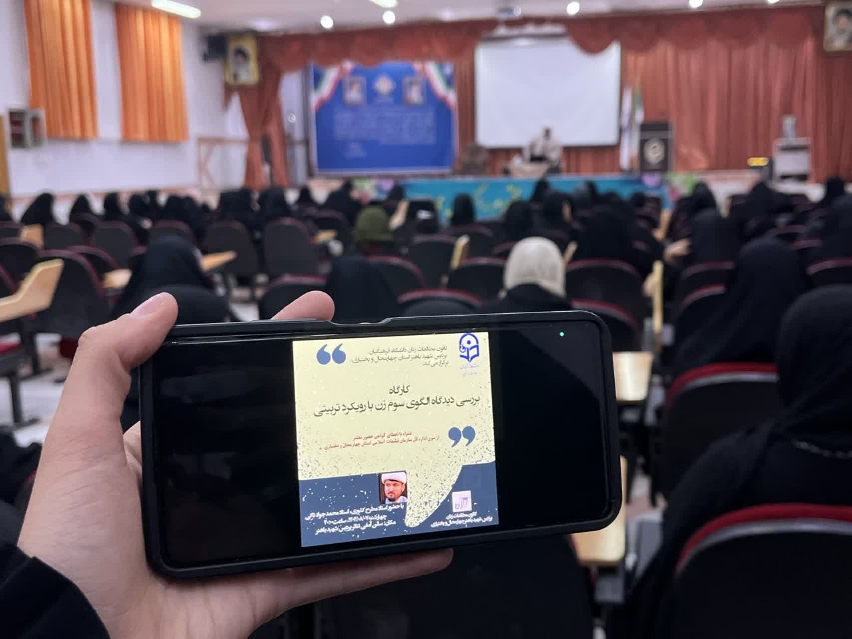 به گزارش روابط عمومی سازمان تبلیغات اسلامی، کارگاه بررسی دیدگاه الگوی سوم زن با رویکرد تربیتی ویژه دانشجویان دختر دانشگاه فرهنگیان استان به همت قرارگاه فرهنگی بانوان استان چهارمحال و بختیاری و با حضور استاد مطرح کشوری، حجت الاسلام محمدجواد تاکی در آمفی تئاتر پردیس شهید باهنر دانشگاه فرهنگیان چهارمحال و بختیاری برگزار شد.