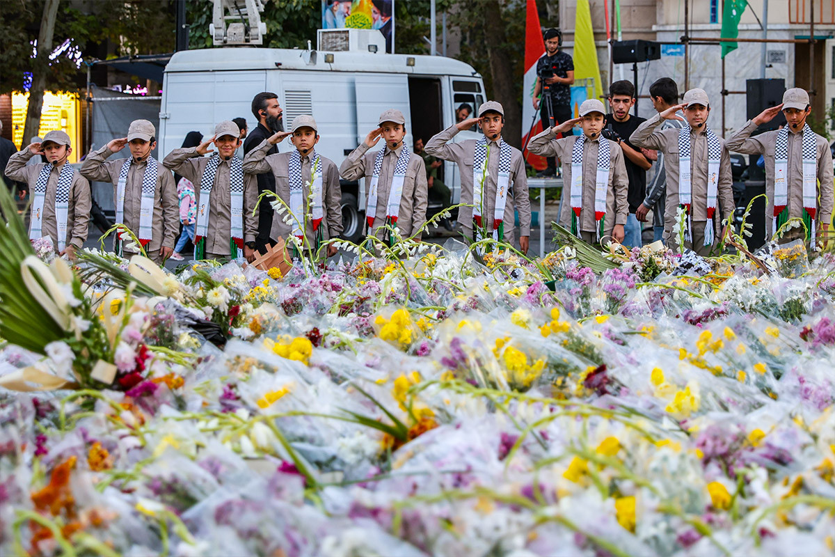 مراسم ادای احترام به شهدای مقاومت و سید مقاومت شهید سید حسن نصرالله با حضور گروه‌های مختلف مردمی در میدان فلسطین برگزار شد.