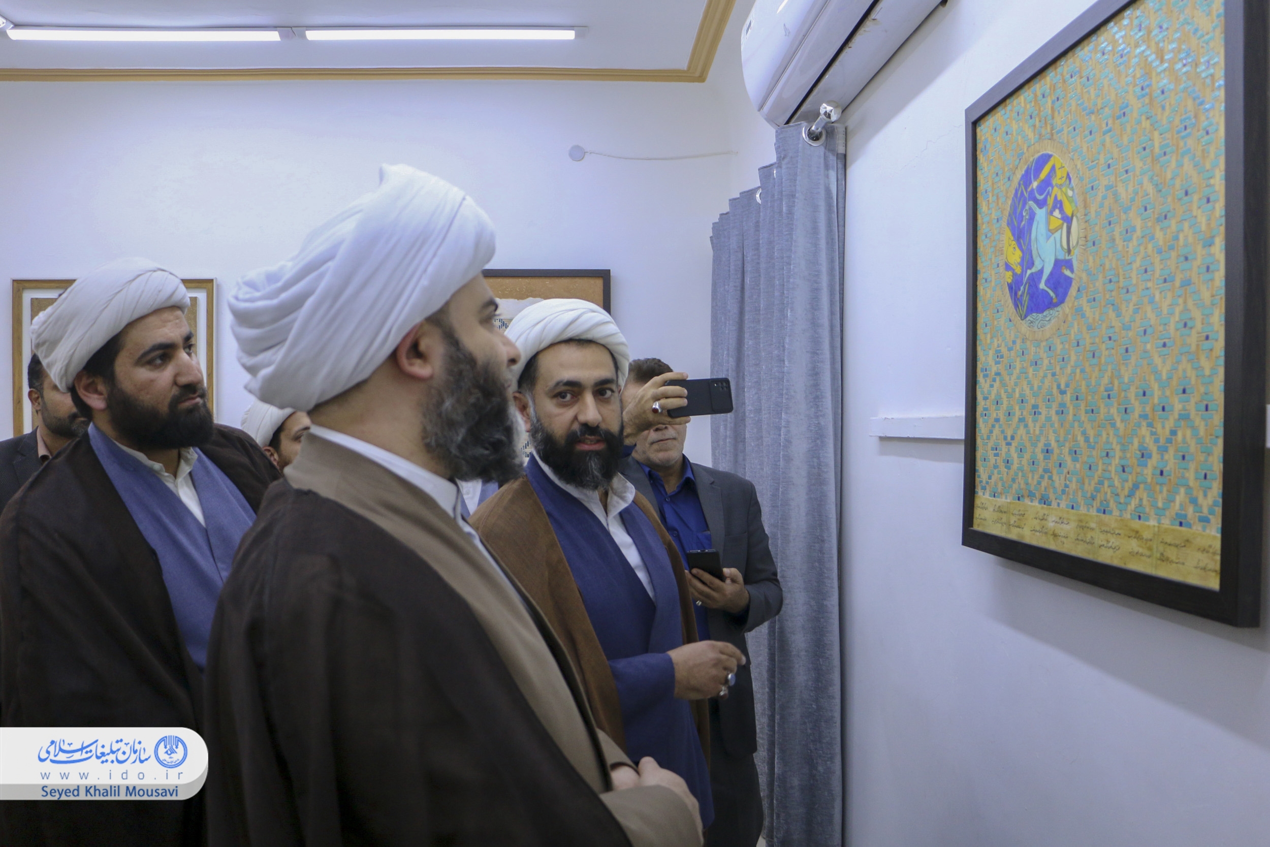 حجت‌الاسلام والمسلمین محمد قمی، رئیس سازمان تبلیغات اسلامی در سفر خود به استان خوزستان از تابلوی «حجاب» اثر هنری حجت الاسلام والمسلمین آرش نیک‌نژاد، هنرمند خوزستانی در گالری ریم اهواز رونمایی کرد.