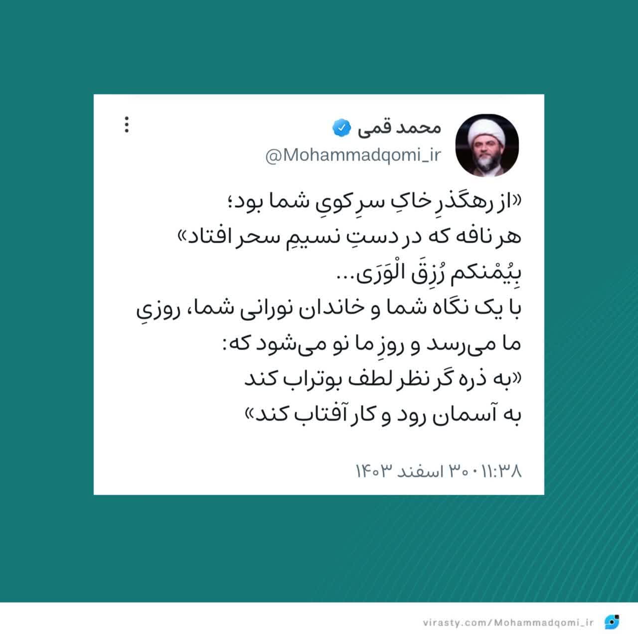 ۳۰ اسفند | حجتالاسلام قمی در صفحه شخصی خود نوشت؛