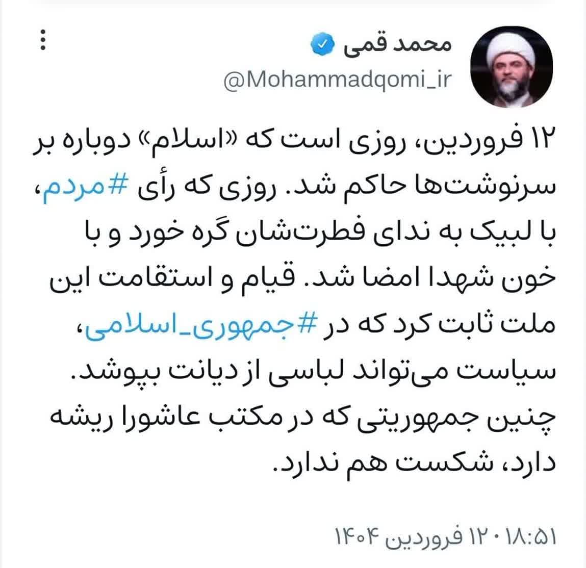 ۱۲ فروردین | حجتالاسلام قمی در صفحه شخصی خود نوشت؛